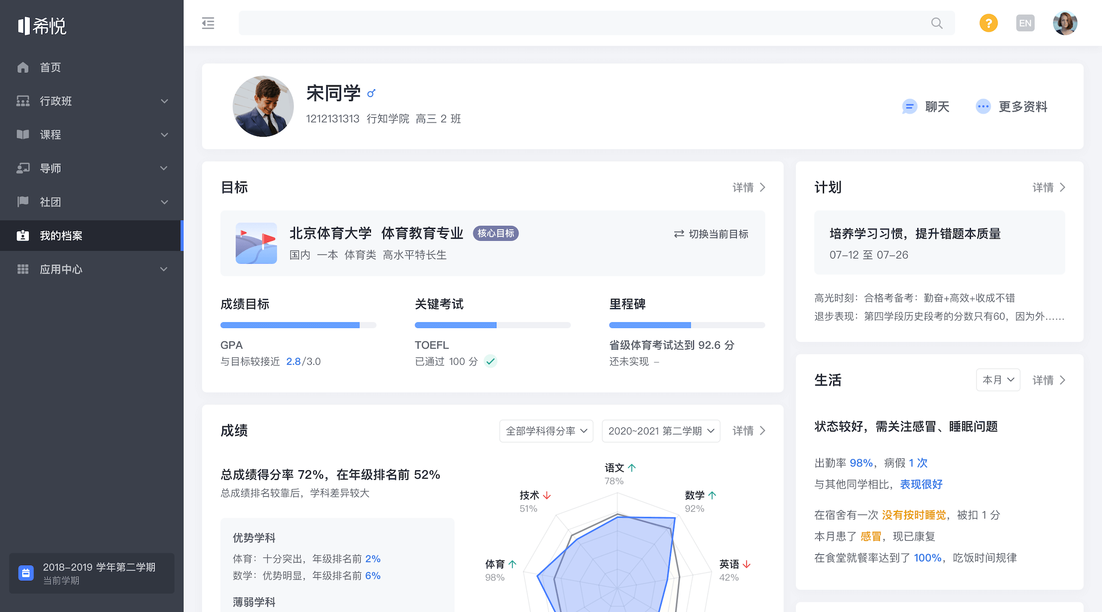 希悦为学校提供创新易用的信息化系统,助力教育工作者洞悉教学细节,