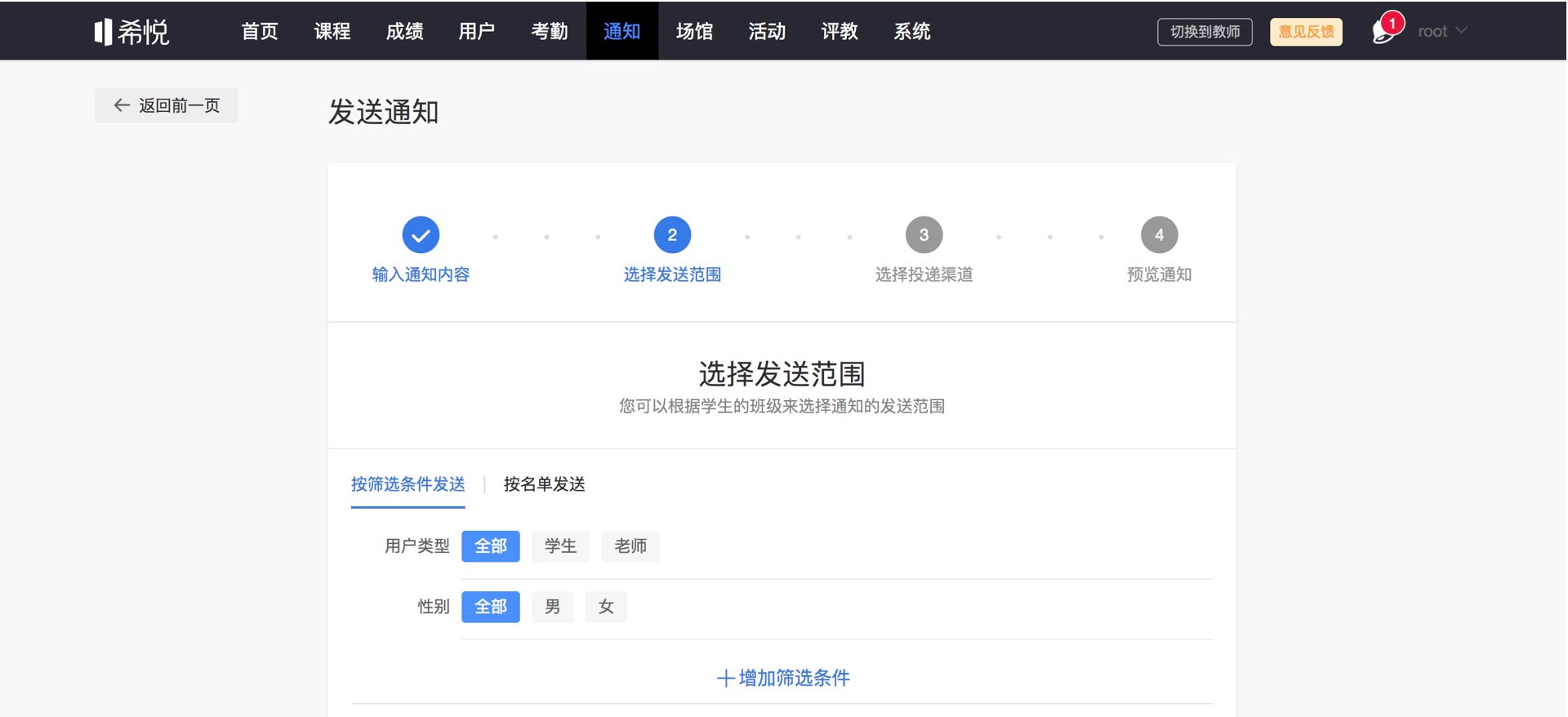 怎样及时有效地将信息传递给师生?使用希悦,通知可以很简单。希悦模块内置高效用户筛选器,帮助教务老师精准选择发送对象,并提供短信、微信、系统内通知等多种发送方式,使师生不错过任何重要信息。